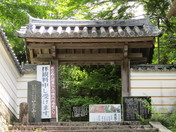 左手に松本亭(旅館)が見えてきたら、ゴール間近。 山門までの石段を一段一段上っていきます。 山門のすぐ手前に、丁石を見つけたら山門に到着です。