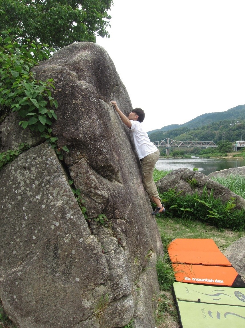 The bouldering spot spreading out across the upper reaches of Kasagi Ohashi (Great Bridge) area is filled with rocks large and small. This is why this area is designated as a top-class bouldering spot in the Kansai District. Its various courses can satisfy everyone from beginners to experts.