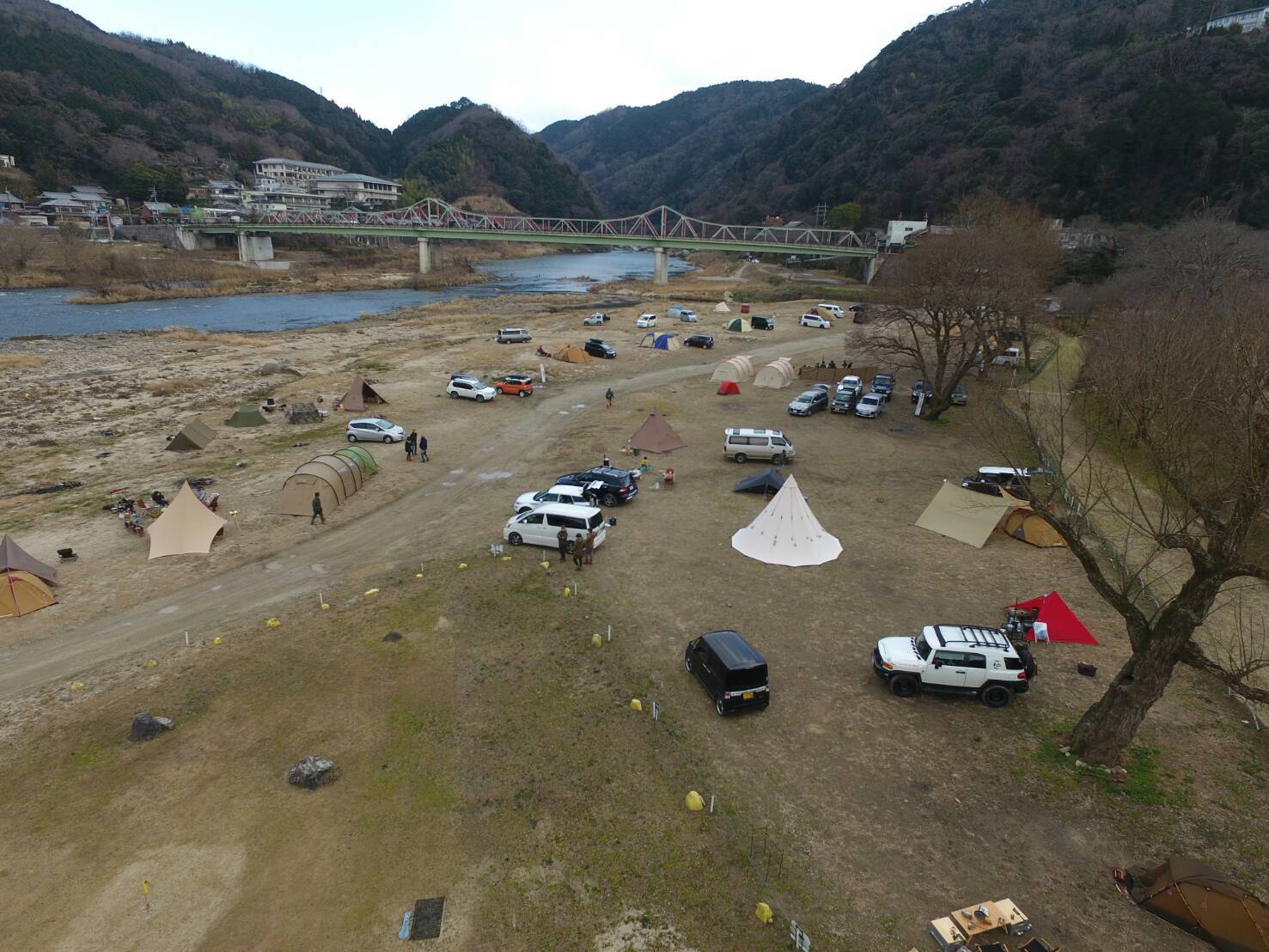 You can enjoy camping at the riverside downstream from Kasagi Ohashi (Great Bridge).