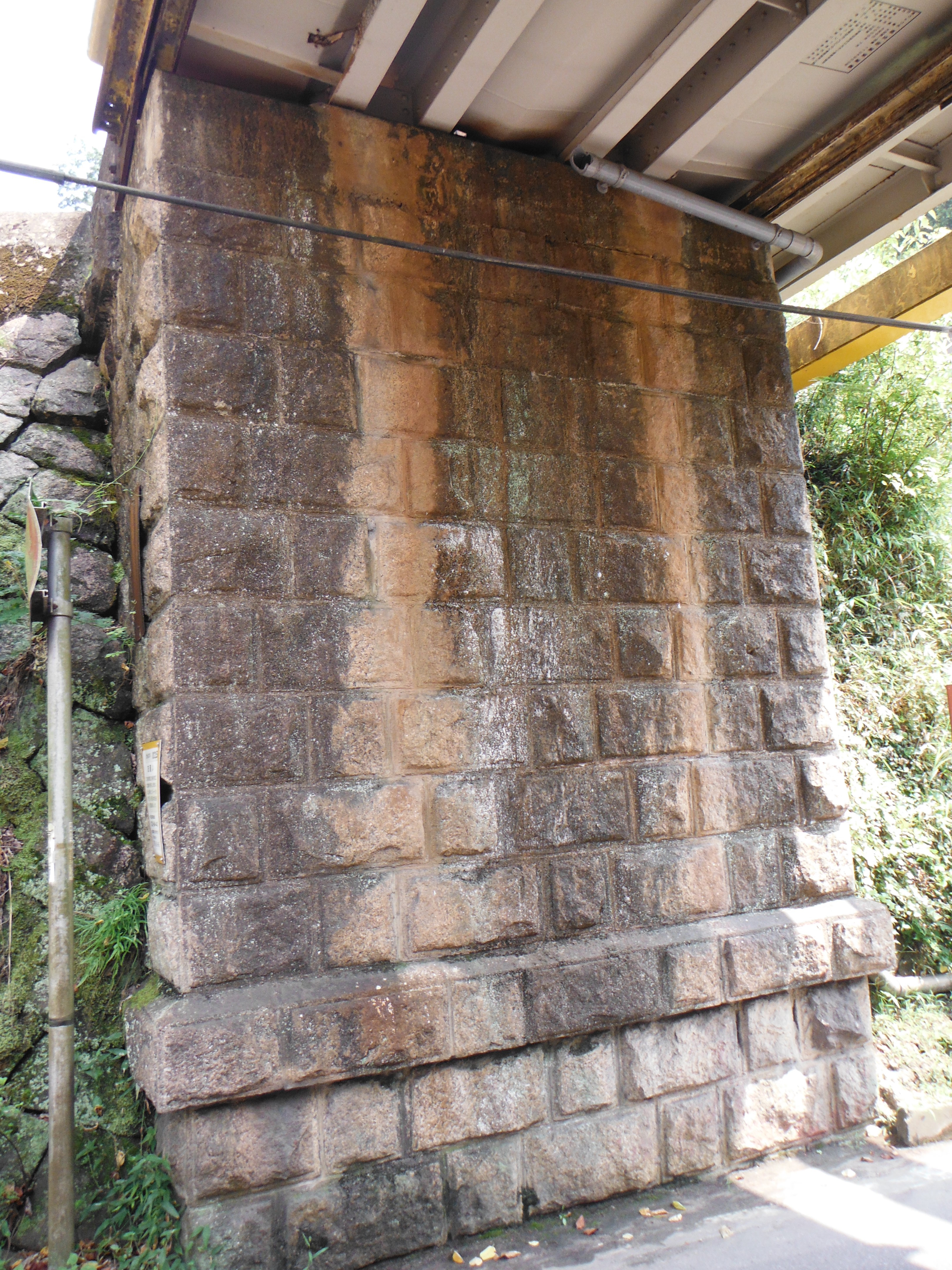 Like the Amanobe Railroad Bridge before its demolition and reconstruction, this bridge is famous as a trestle-type bridge.  This bridge-completed in 1897- is now the oldest trestle bridge in Japan.  The abutment features bricks and cornerstones layers.