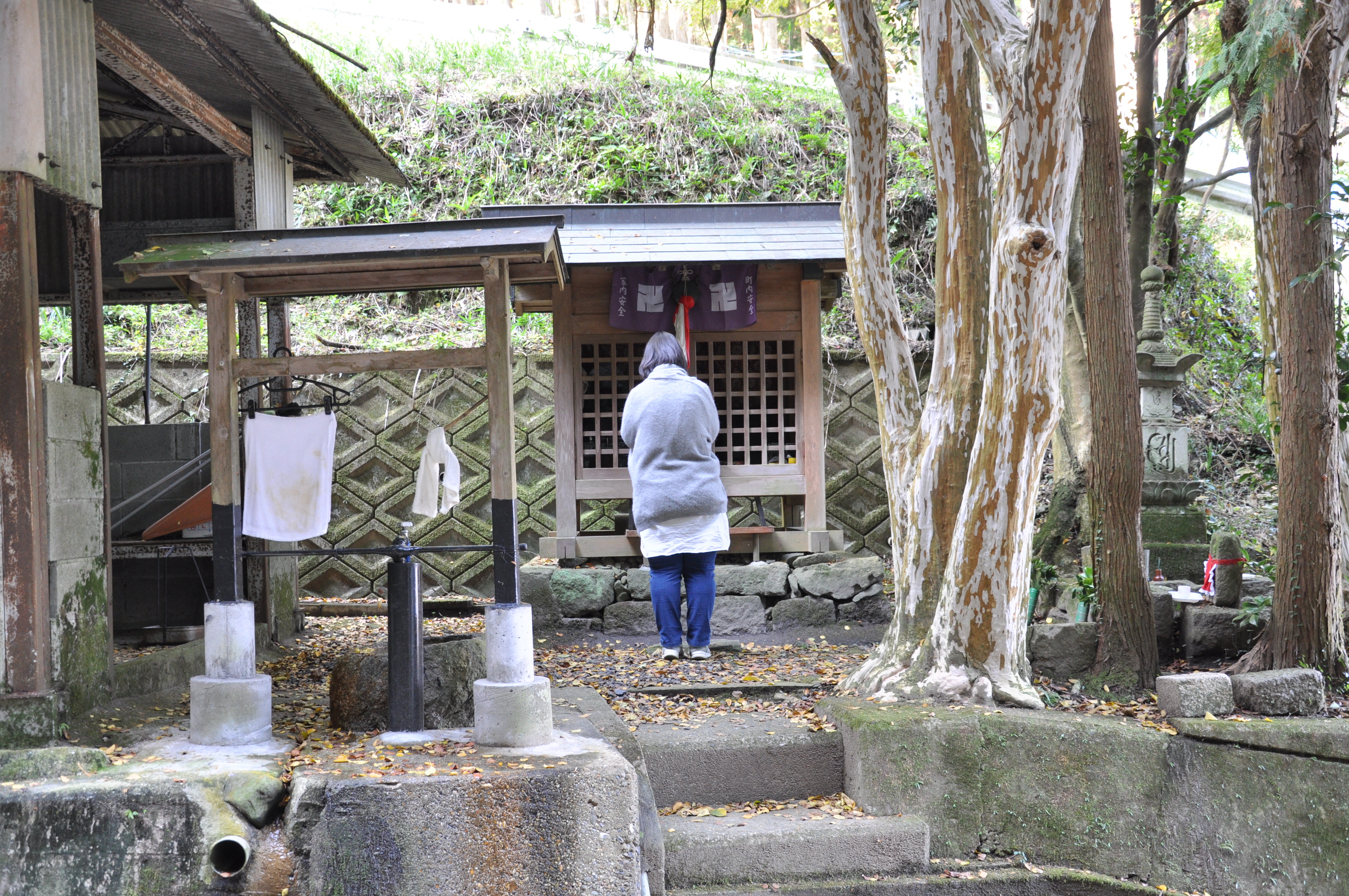 頂上にお祀りされているお地蔵様は、昔から往来する人々を見守られてきました。地域の人たちは、今もこの道を通るときはお地蔵様に合掌して通られています。また、「子授け地蔵」としても知られ、とても親しまれているお地蔵様です。