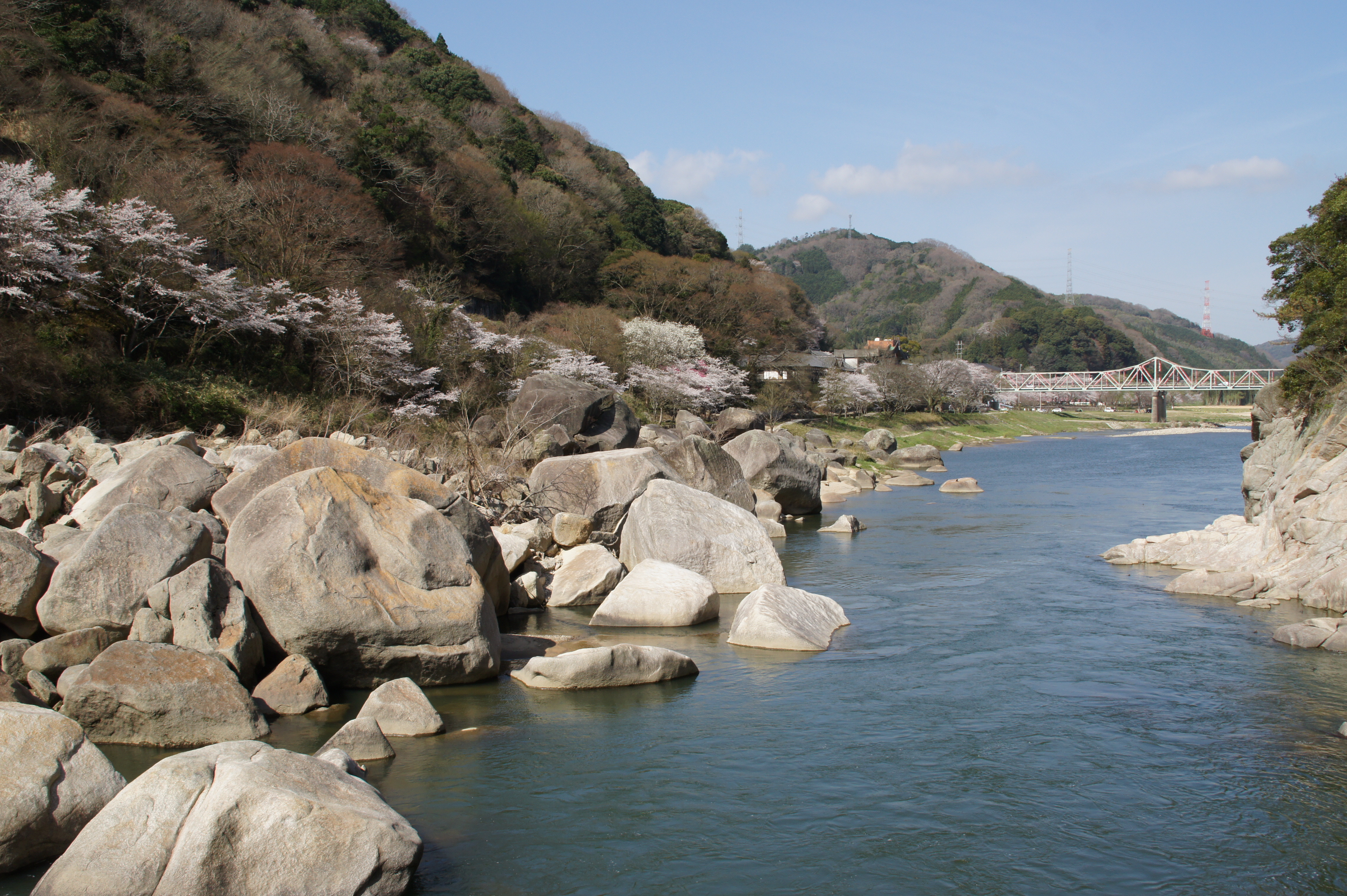 笠置大橋上流、獅子ヶ淵から望む