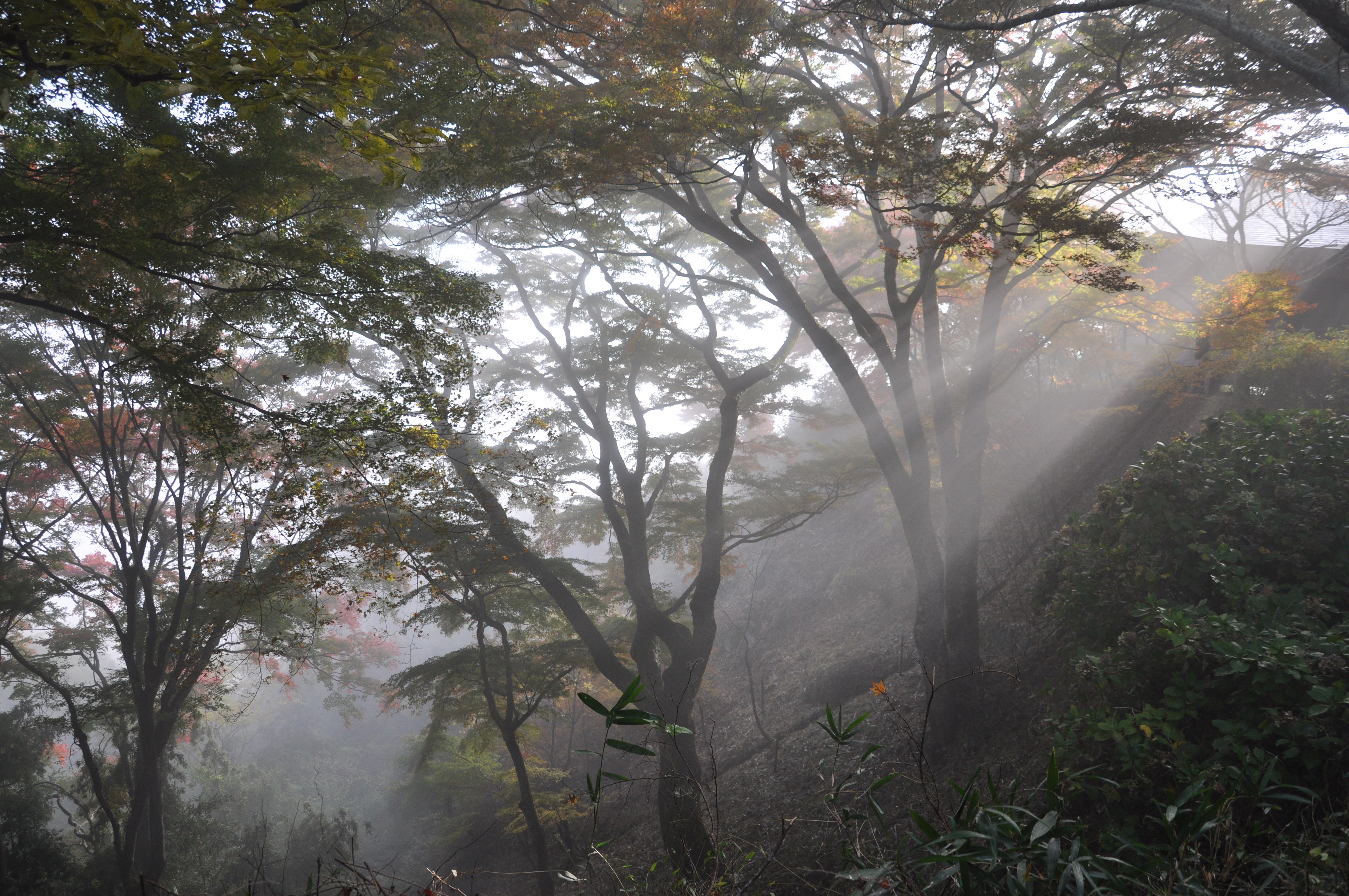 花崗岩から成る奇岩・怪石が多く点在していて、古くから修験道場、信仰の山とされていた笠置山は標高288メートルの小高い山です。クヌギやアオキなどの広葉樹が自生しています。