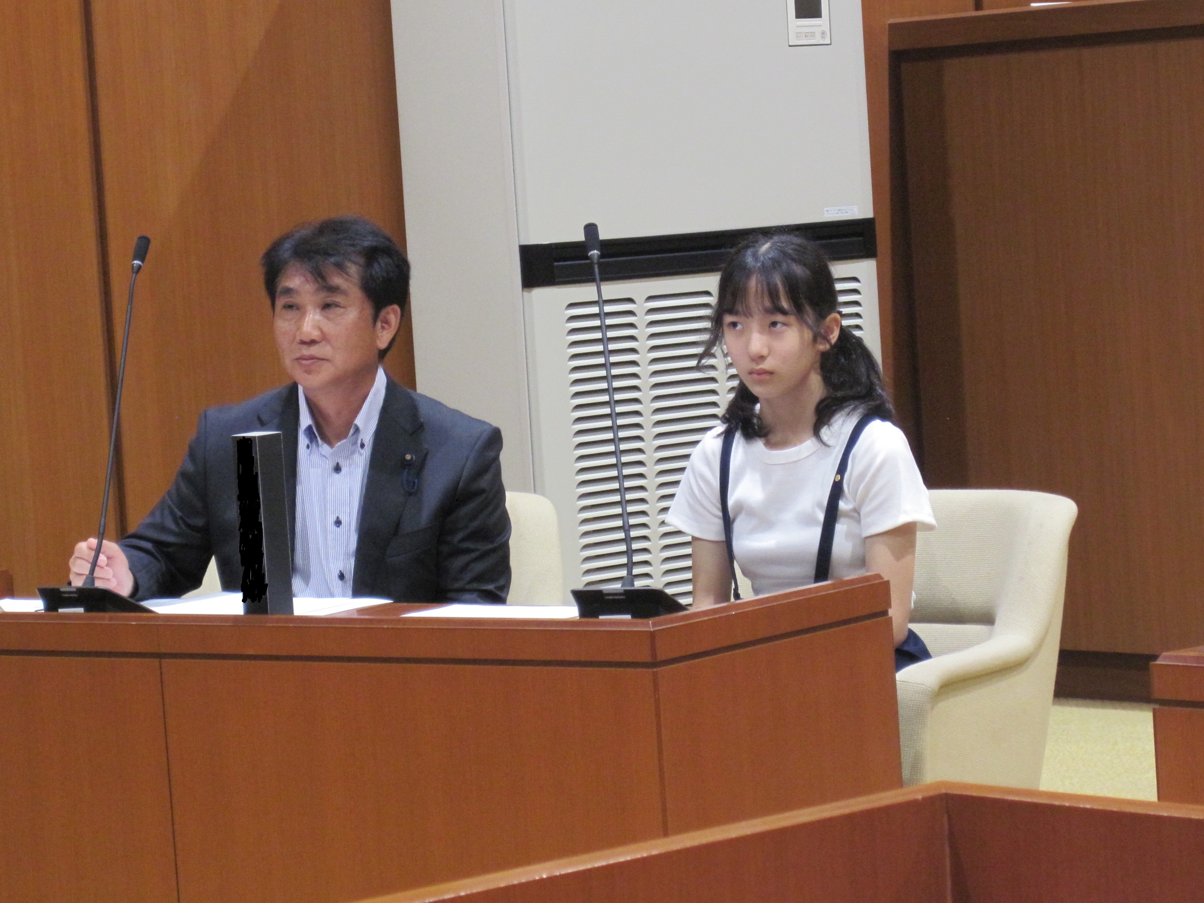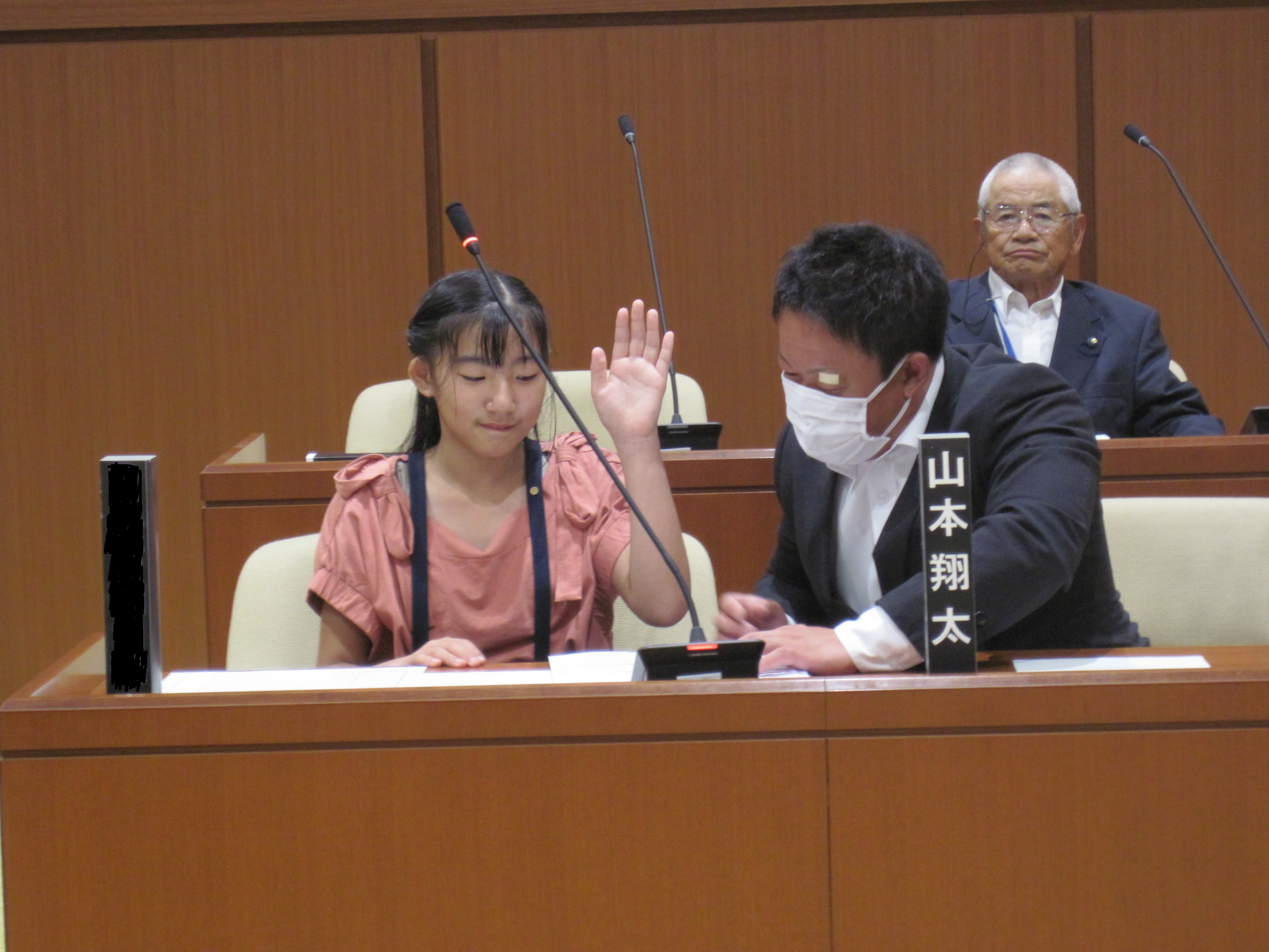 子ども議員は、事前に笠置町議会議員より、議会のしくみや一般質問の作り方を学び、自ら一般質問を考えて議会に臨みました。