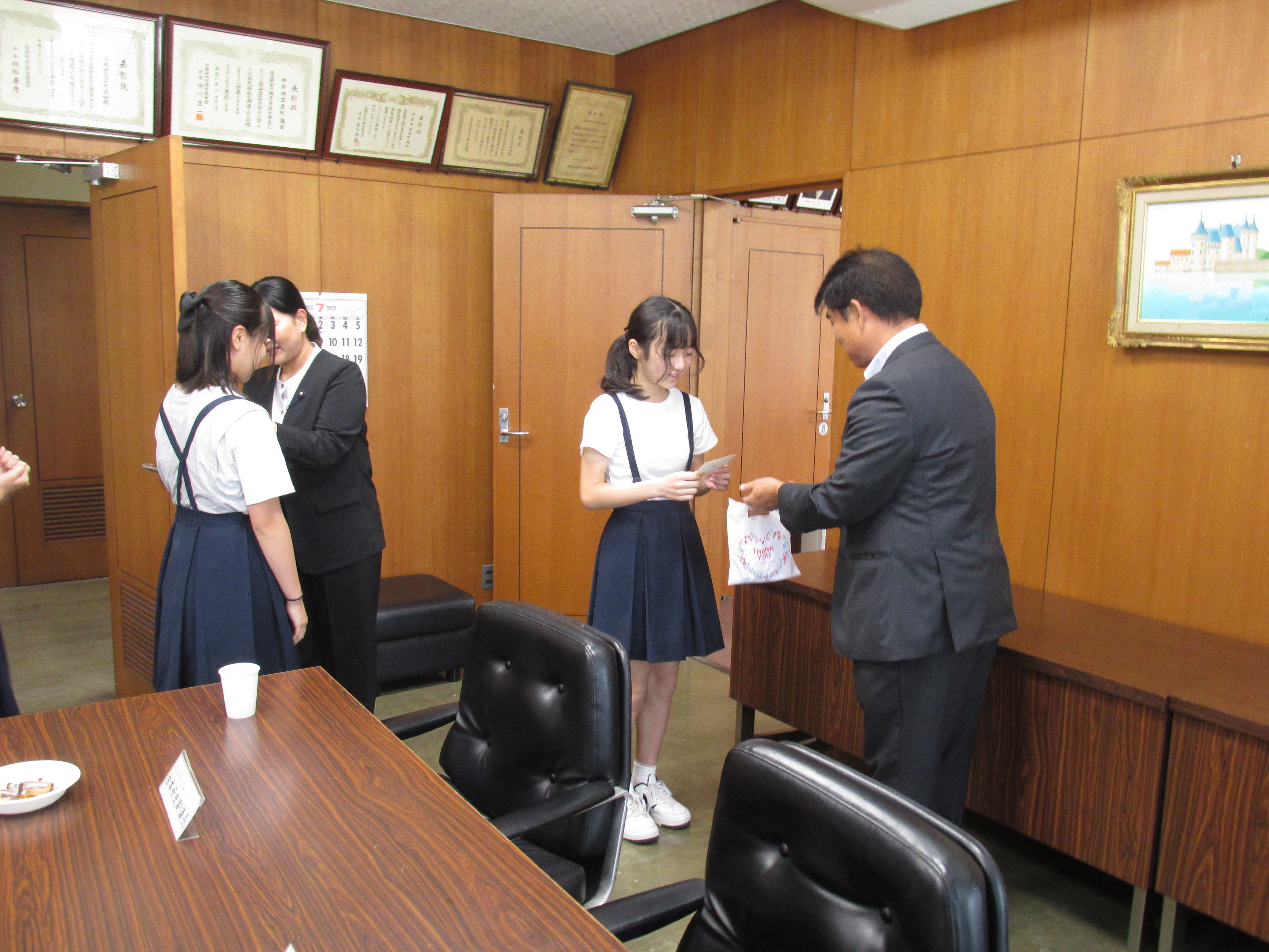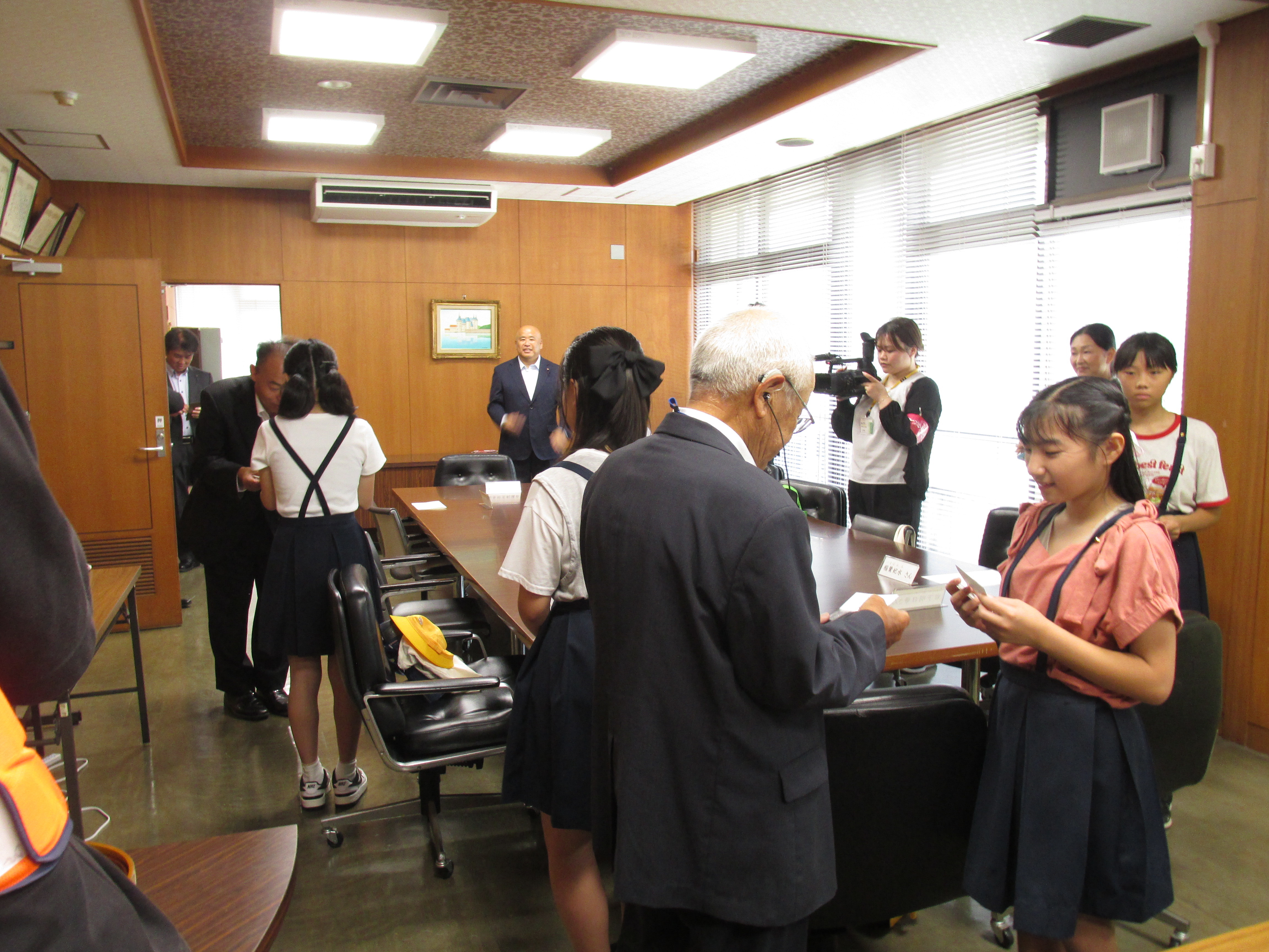 子ども議会終了後に議員と茶話会を行いました。本番の緊張もほぐれ、子ども議会の中で時間切れのため聞けなかった質問をしたり、感想をきいたりしながら和やかな時間となりました。