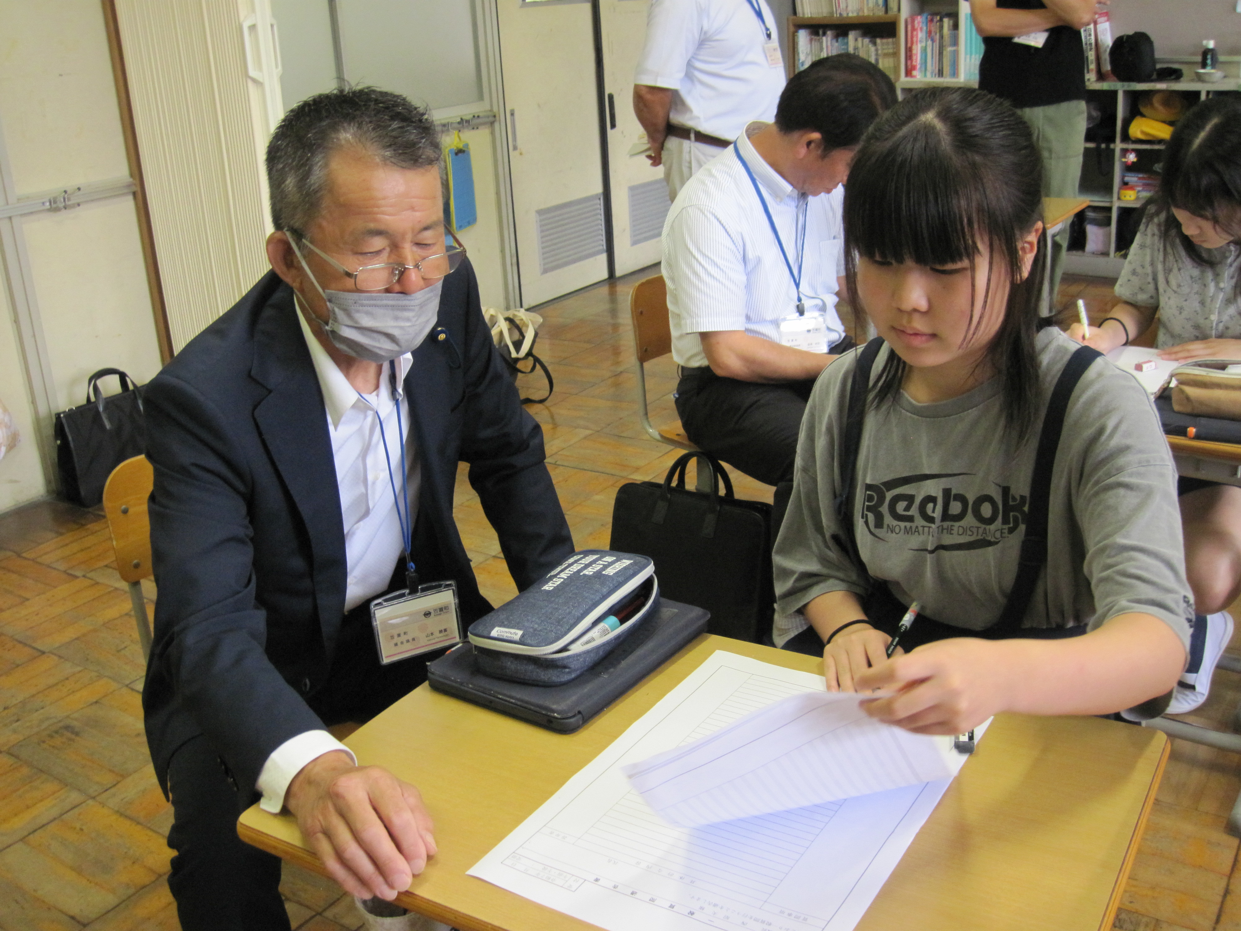 実際に一般質問を書く授業で、議員から書き方などのアドバイスを行いました。