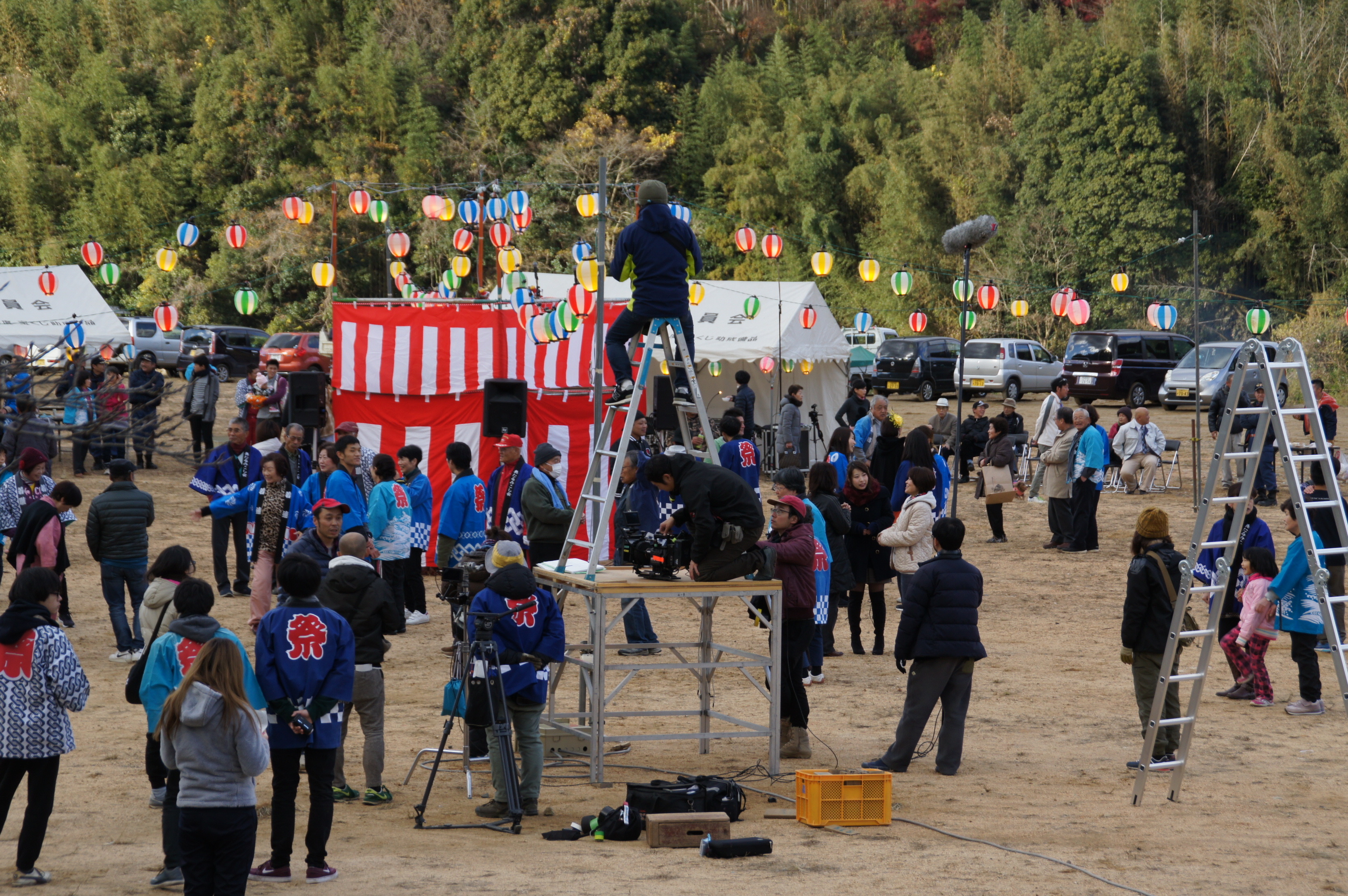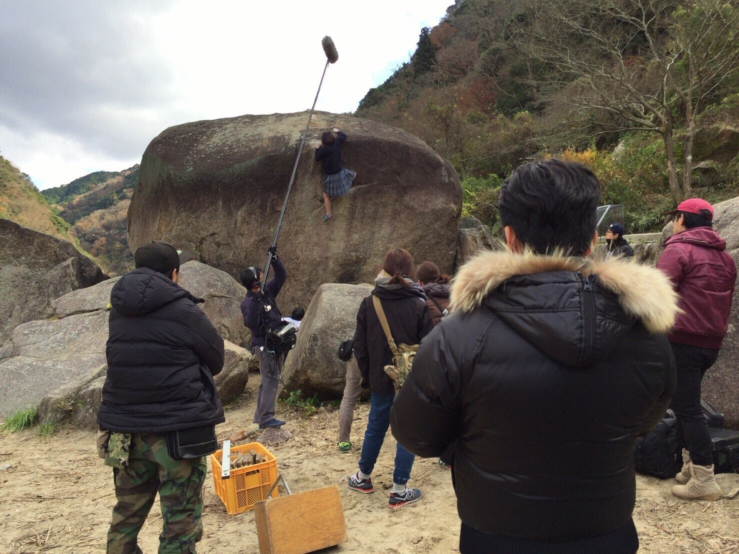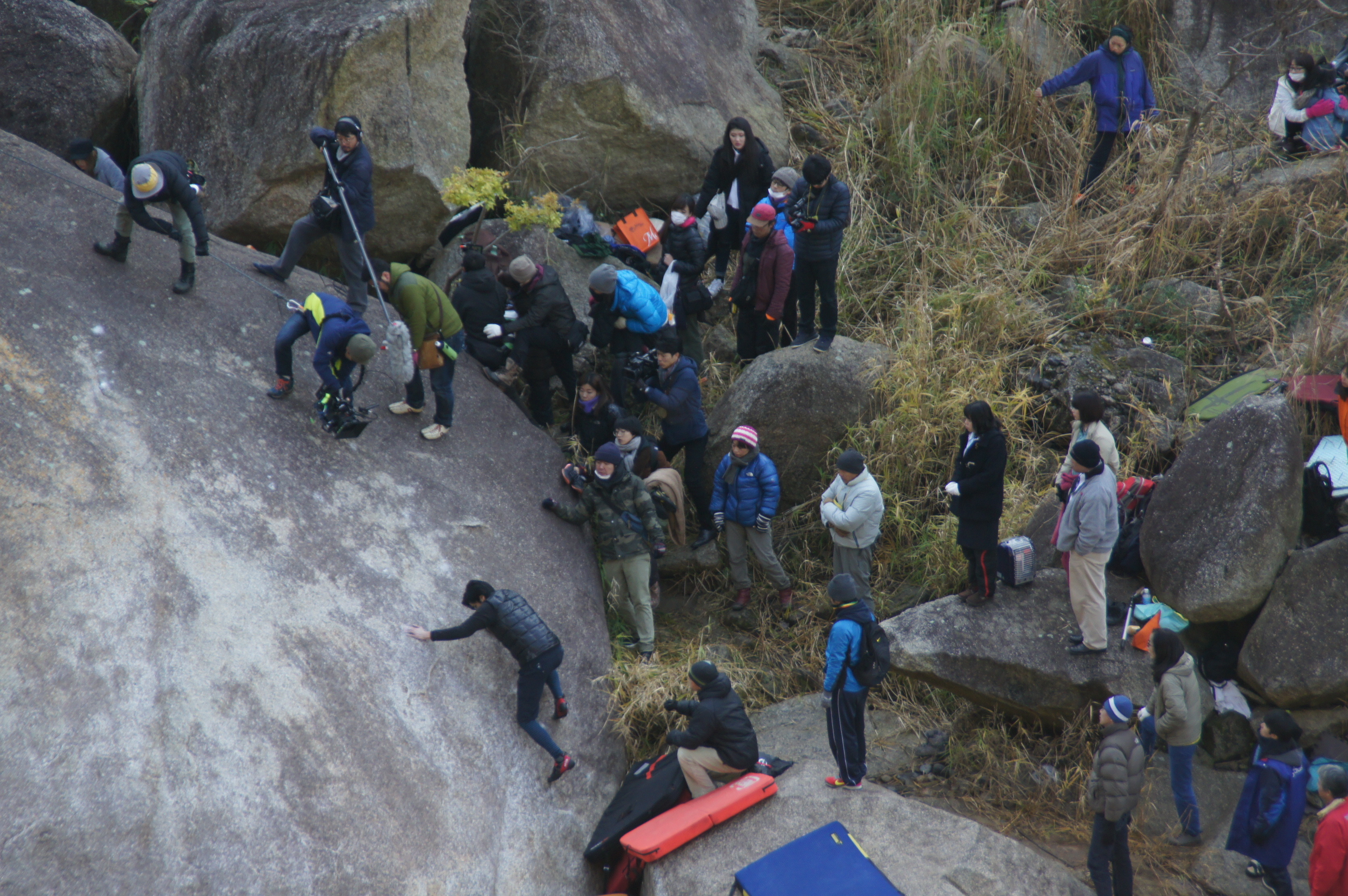 ボルダリング大会シーンの撮影 寒い中、エキストラに大勢の方が参加してくれました。